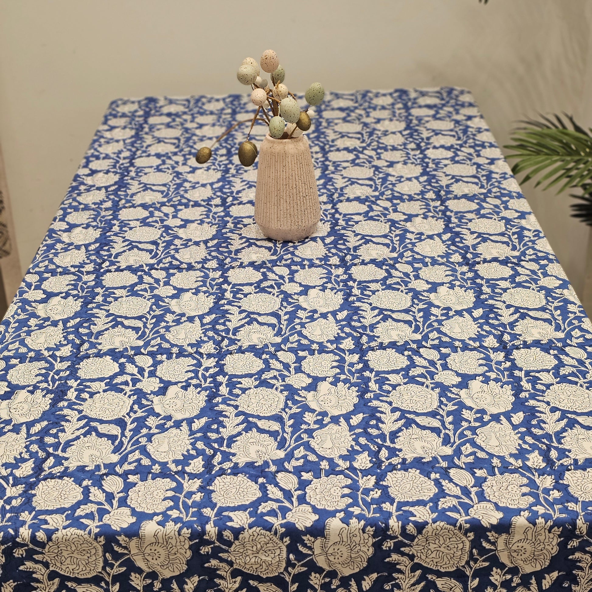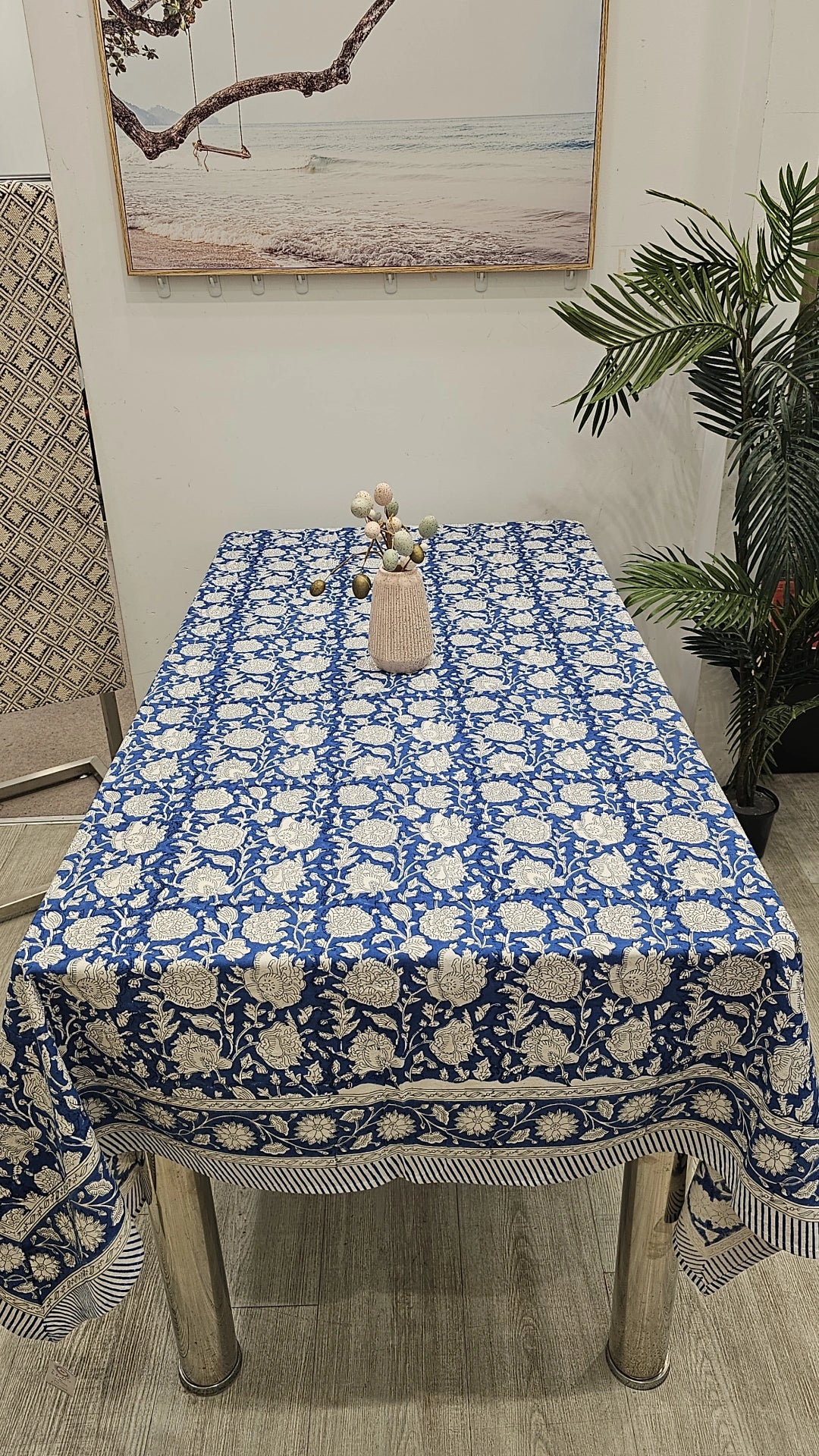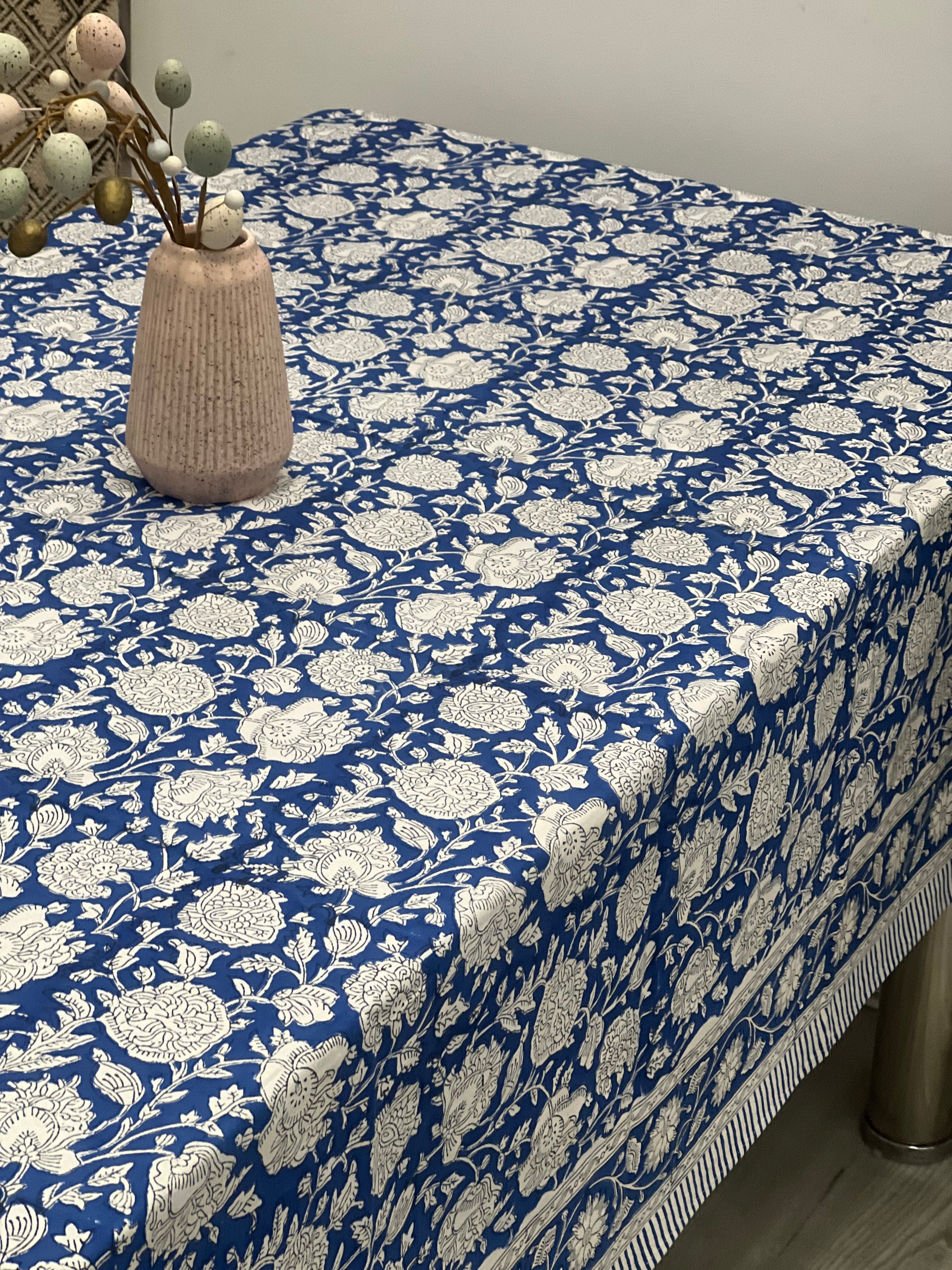 pe your dining table in the allure of the night with our "Midnight Blooms: Dark Blue Floral Hand block Tablecloths." The deep, enchanting hue of dark blue is adorned with intricate hand block floral patterns, creating a captivating display of elegance. Meticulously crafted, these tablecloths not only bring a touch of artistry to your table but also embody a commitment to quality and durability. Transform your dining experience into a journey through midnight gardens, where each meal is a moment to savor amidst the poetic dance of florals. Elevate your dining space with the sophistication of "Midnight Blooms," where every gathering becomes a celebration of refined style and timeless beauty.