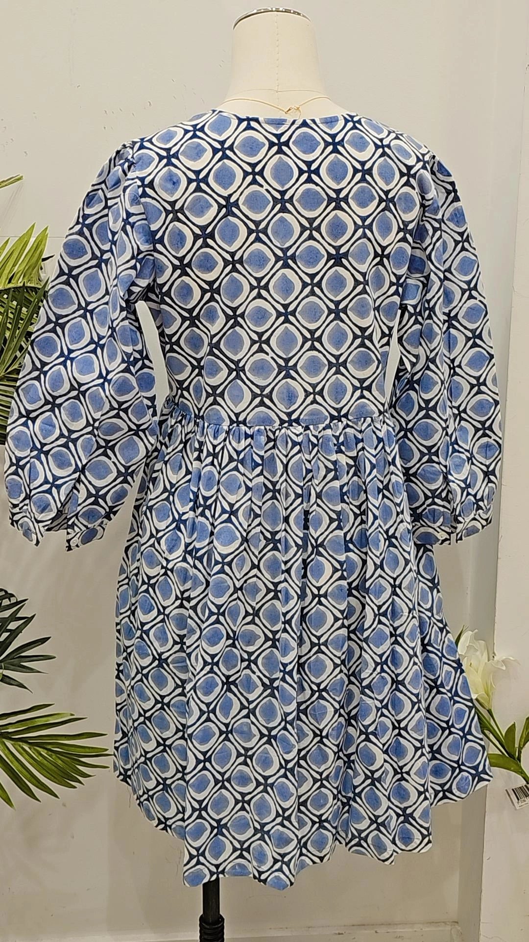 "Sapphire Elegance: Hand-Blocked Blue Dress"