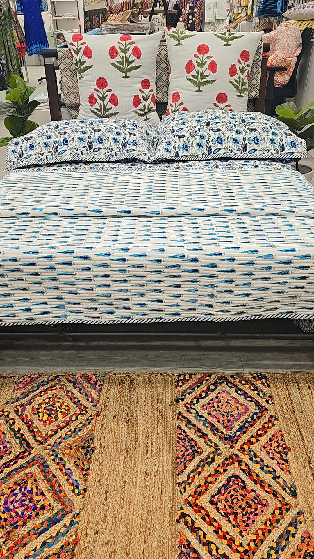 Introducing our "Blue Blossom: White Floral Comforter Set" - a stunning blend of elegance and comfort designed to elevate your bedroom decor to new heights. Crafted with meticulous handblock print detailing, each piece exudes timeless charm and sophistication.