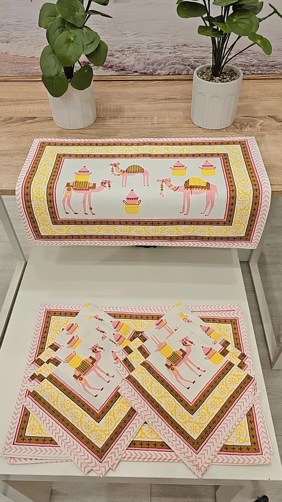 "Gilded Deserts: Golden Camel Prints Placemats and Napkin Set"