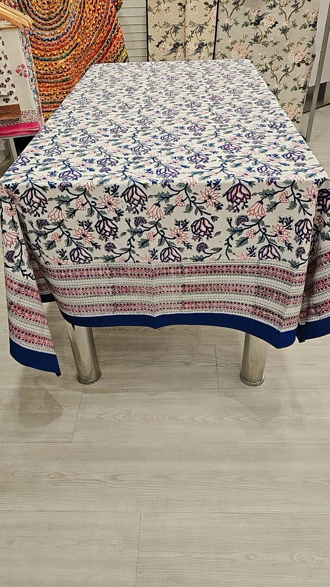 Introducing our "Blue Blossoms" White-Based Floral Tablecloth, meticulously handmade and adorned with delicate blue flowers through the art of handblock printing. Crafted from pure cotton, this tablecloth combines elegance and functionality to elevate your dining experience. The serene blue blossoms against the crisp white background bring a touch of tranquility to any meal setting. Not only does it enhance the ambiance of your dining space, but it's also easy to maintain, ensuring long-lasting beauty for years to come. Whether for your own home or as a thoughtful gift, this tablecloth is the perfect choice for those who appreciate both style and quality.