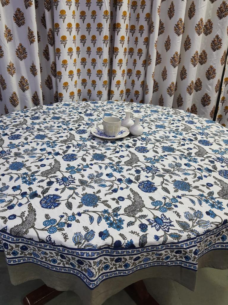 Introducing "Serenity Blooms: Graceful Grey Blue Floral Round Tablecloth," a harmonious blend of style and comfort. Meticulously crafted from 100% cotton using the intricate technique of hand block printing, these tablecloths are not only a testament to quality but also an embodiment of elegance.