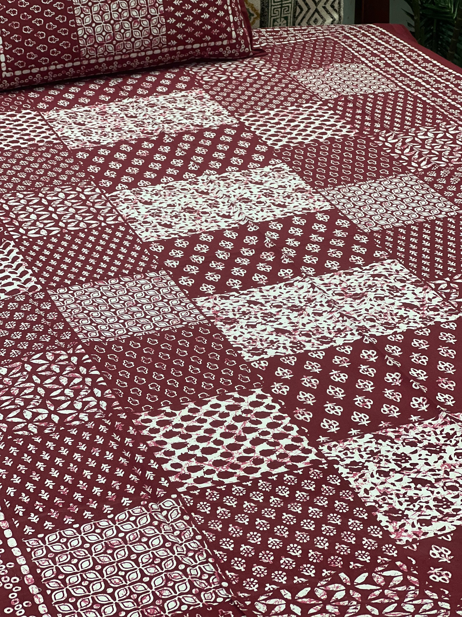 The deep red hue provides a rich and inviting backdrop, while the white hand block-printed motifs add an ethereal touch. Made from pure cotton, it ensures a soft and luxurious feel against your skin, promising a serene night's sleep.