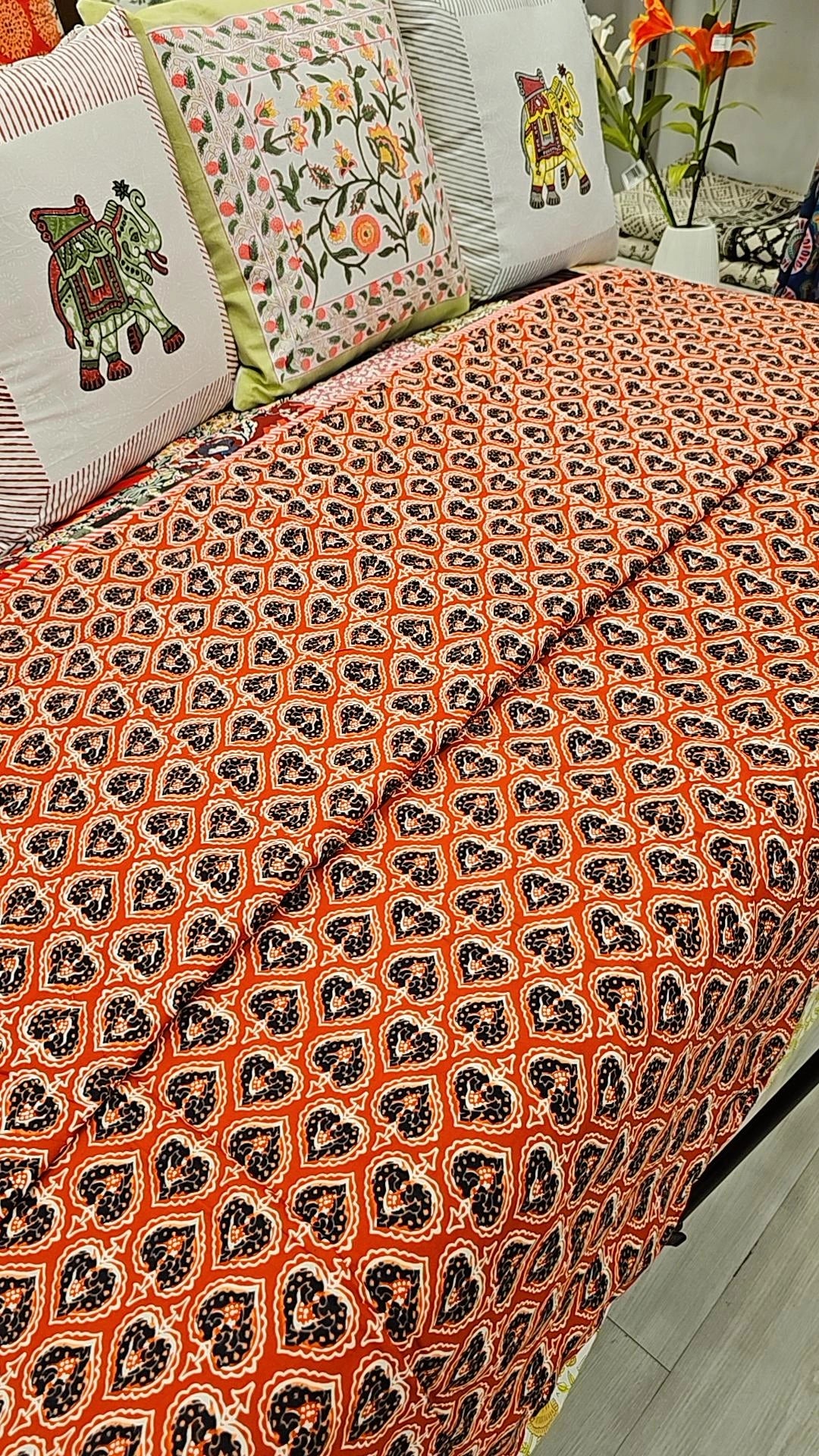 Beyond functionality, these quilts serve as a focal point in your bedroom, injecting a burst of vibrancy and personality into your space. The intricate handblock prints add a touch of artistry, transforming your sanctuary into a haven of tranquility and elegance.