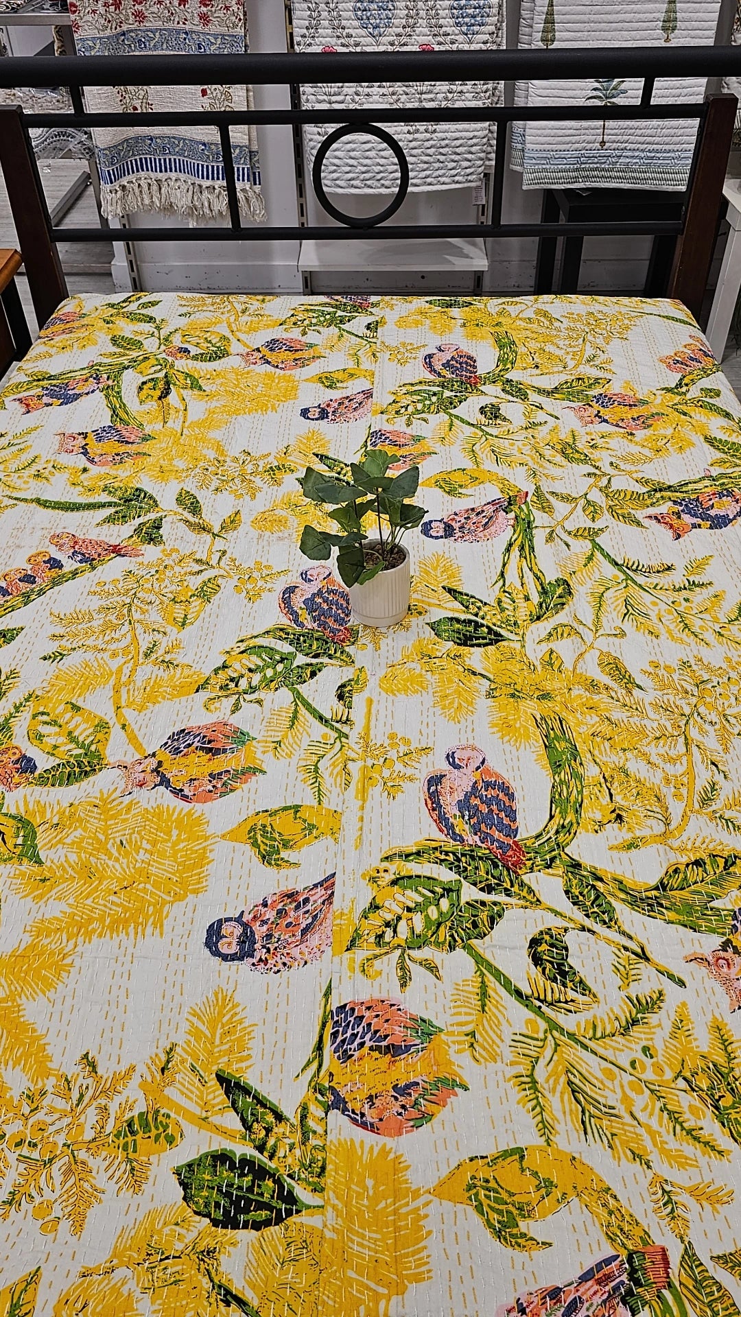 Whether draped over your bed or adorning your favorite reading nook, the "Whimsical Blooms" Kantha Quilt is more than a piece of art; it's an invitation to embrace the playful spirit of nature and the timeless allure of owls. Immerse yourself in a world where each stitch tells a story, and every bloom whispers tales of enchantment