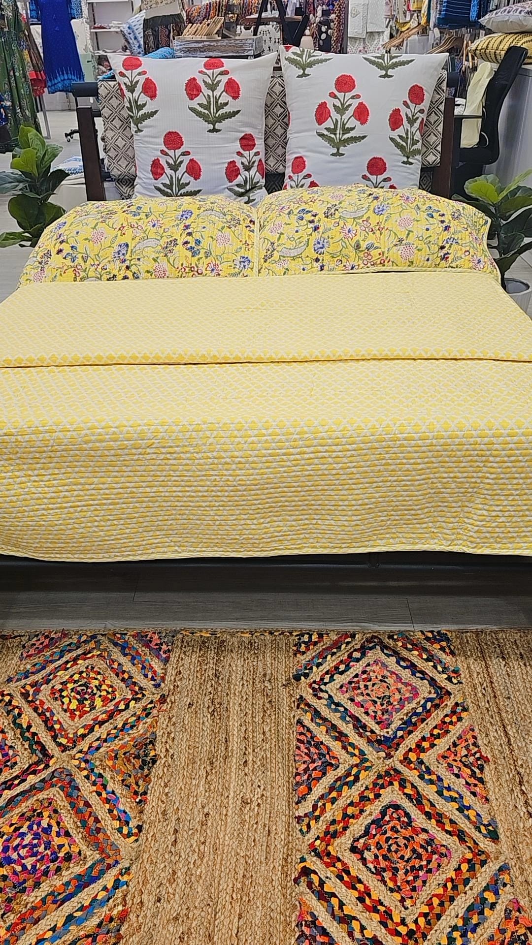Introducing our "Golden Blooms: Reversible Floral Comforter Set" - a delightful fusion of elegance and functionality. Immerse yourself in the allure of handblock print designs, intricately woven onto premium fabric to bring a touch of luxury to your bedroom.