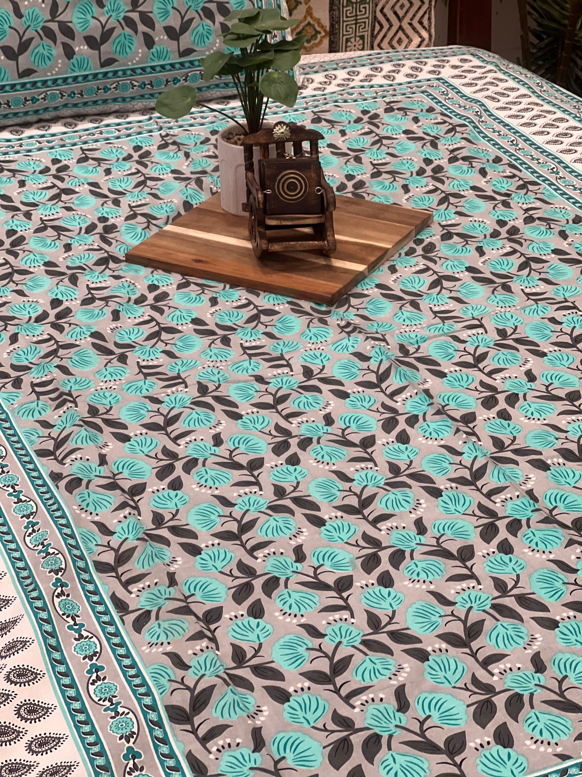 Crafted with meticulous attention to detail, this bedsheet not only promises a visual feast but also ensures a soft and comfortable touch. The harmonious interplay of green tones and floral designs adds a touch of tranquility to your sleeping space.