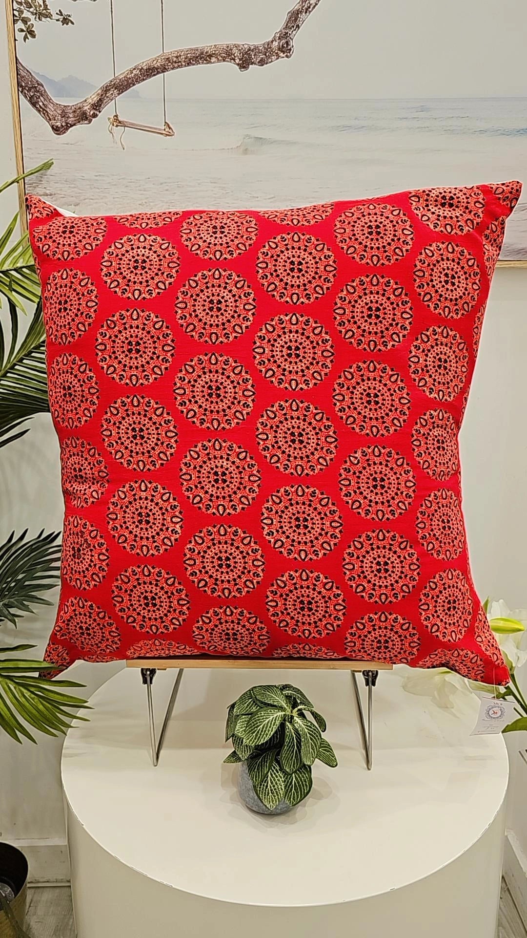 Made with precision and an eye for detail, these cushion covers not only serve as decorative accents but also offer a plush touch for enhanced comfort. Embrace the transformative power of 'Crimson Symmetry,' and let your surroundings reflect the elegance and harmony found in every carefully woven geometric line."