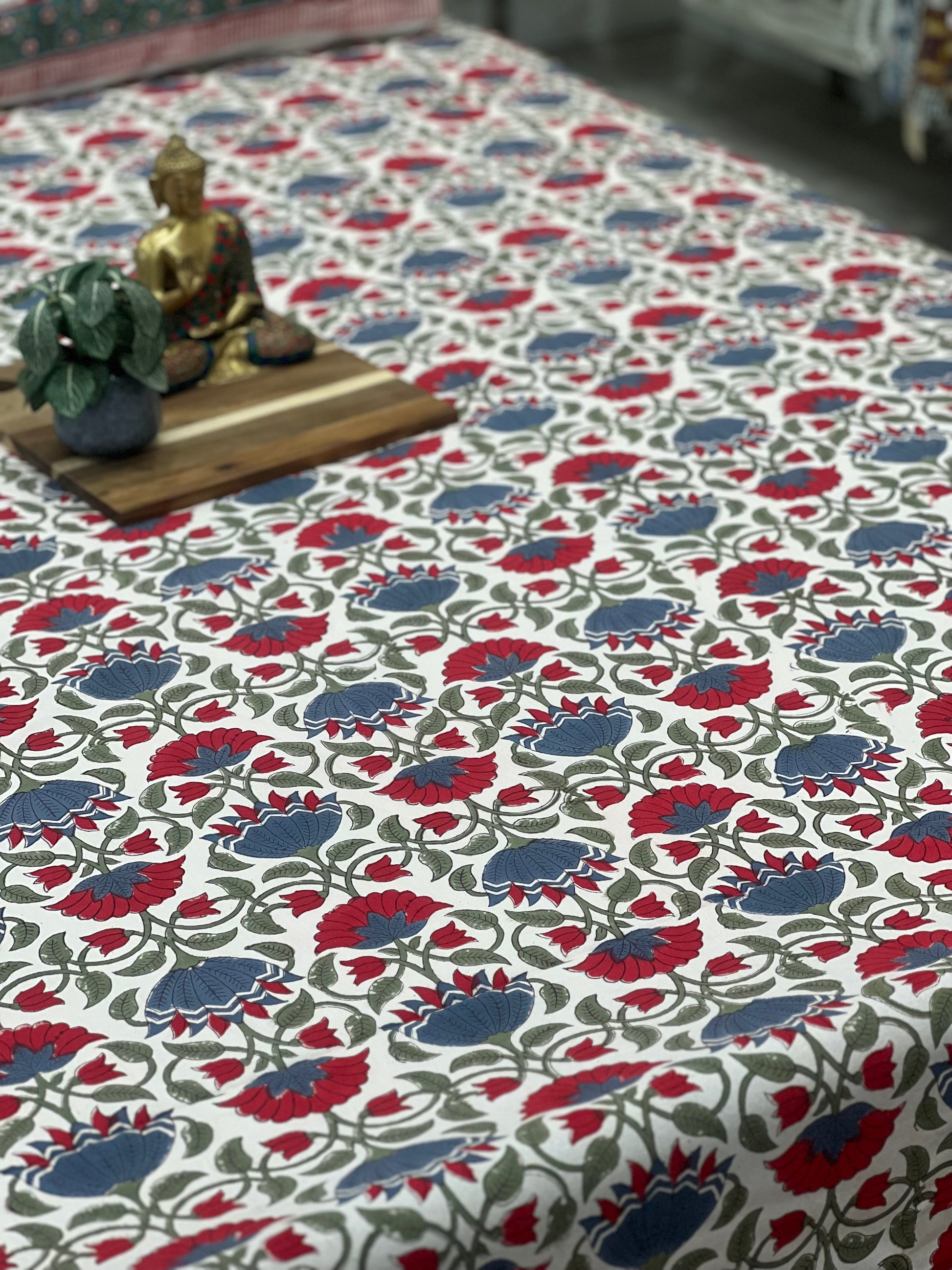 Crafted from high-quality fabric, this bedsheet not only captivates with its design but also ensures a restful night's sleep with its soft and comforting touch. The fusion of red and blue creates a harmonious balance, making it a versatile choice for any bedroom decor.
