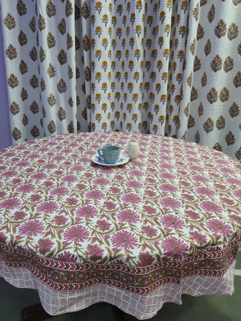 Step into a world of enchantment with "Blushing Petals: Pink Blooms Round Tablecloth," where elegance meets the delicate charm of handblock printing on 100% cotton. Immerse yourself in the luxury of quality craftsmanship that not only adds sophistication but also ensures a touch of practicality.