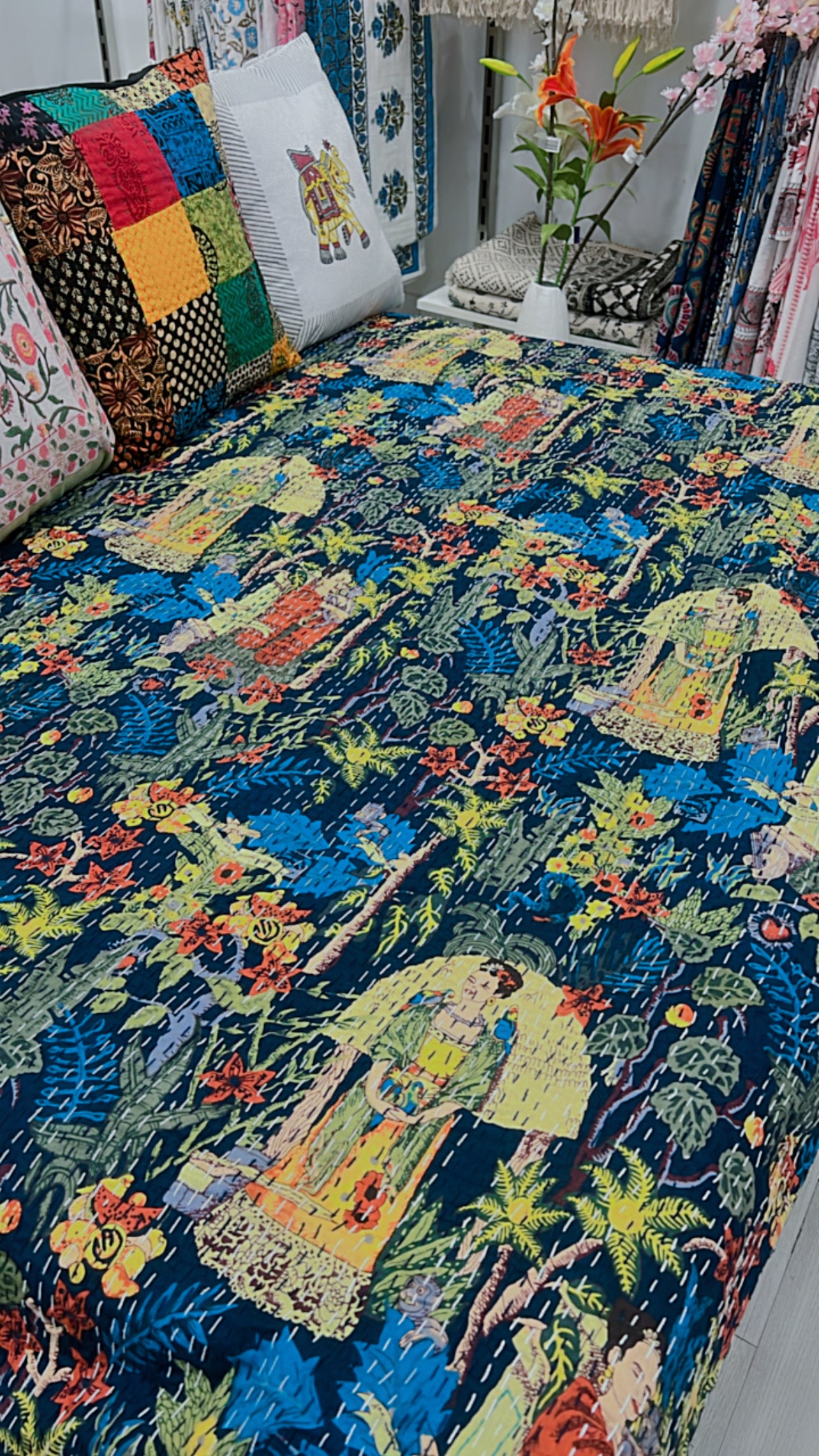 Whether you're a fan of Frida Kahlo's artwork or simply appreciate the beauty of handmade craftsmanship, these kantha quilts are sure to delight and inspire. Add a touch of Mexican-inspired flair to your home with Frida's Floral Haven: Kantha Print Tribute, and transform your space into a sanctuary of style and comfort.