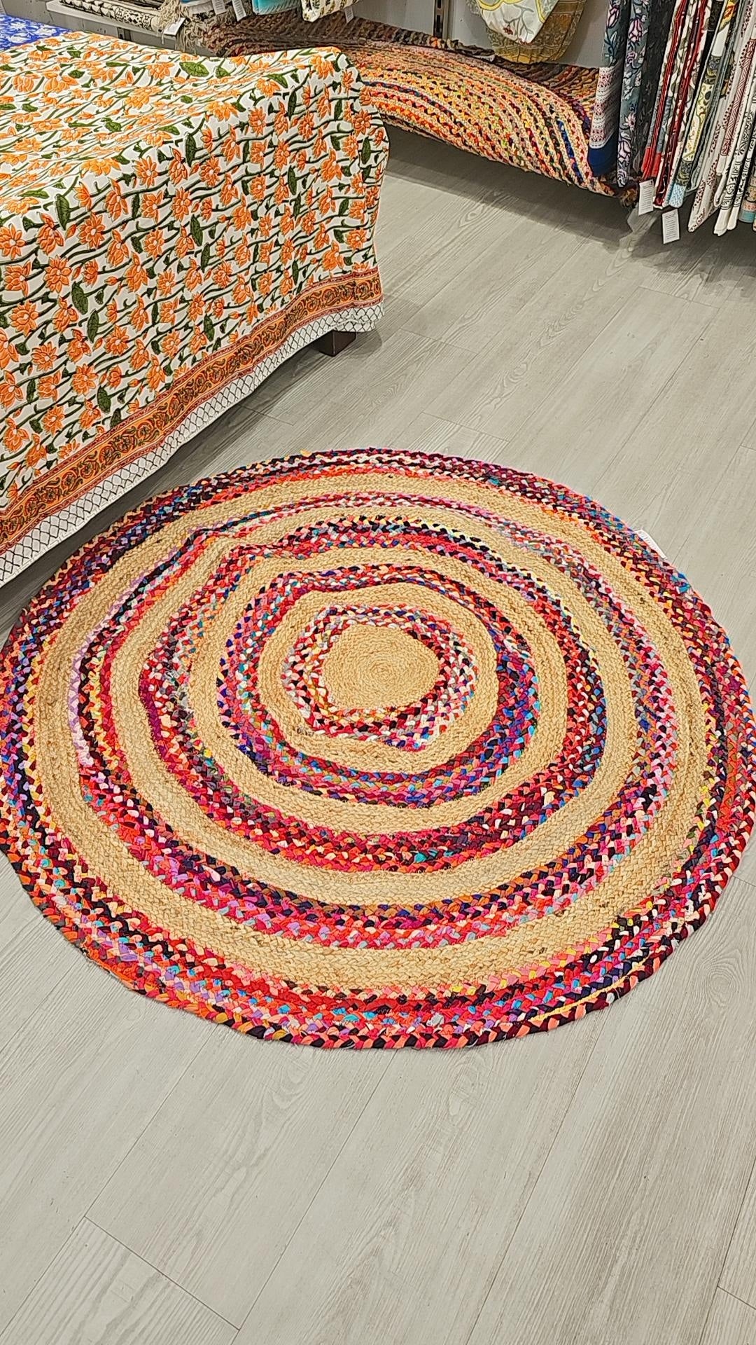 Elevate your space with the timeless beauty of our handmade circular patterned multicored jute rug. It's more than just a rug—it's a piece of art that brings character, comfort, and sustainability to your home. Make a statement and create a welcoming ambiance with this exceptional addition to your decor.