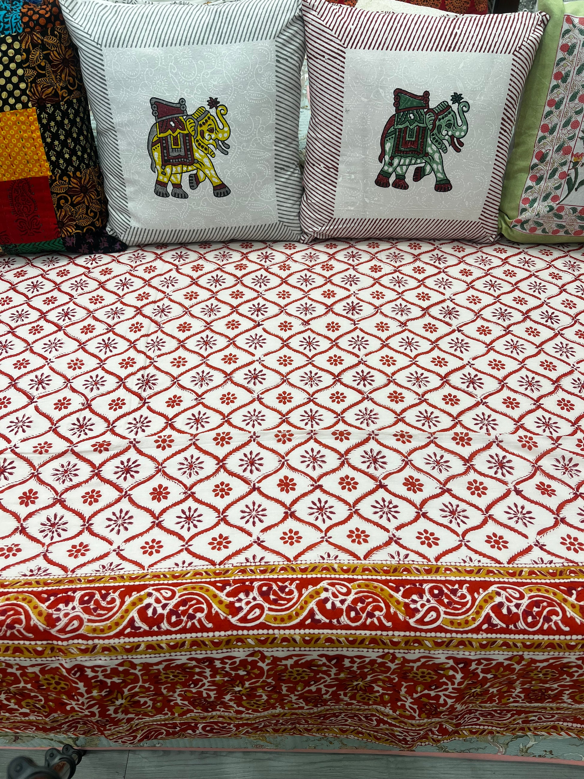 Introducing our Pure Cotton Handblock Printing Summer Quilts: "Sunset Blooms: Orangish Red Floral Patterns Quilt".