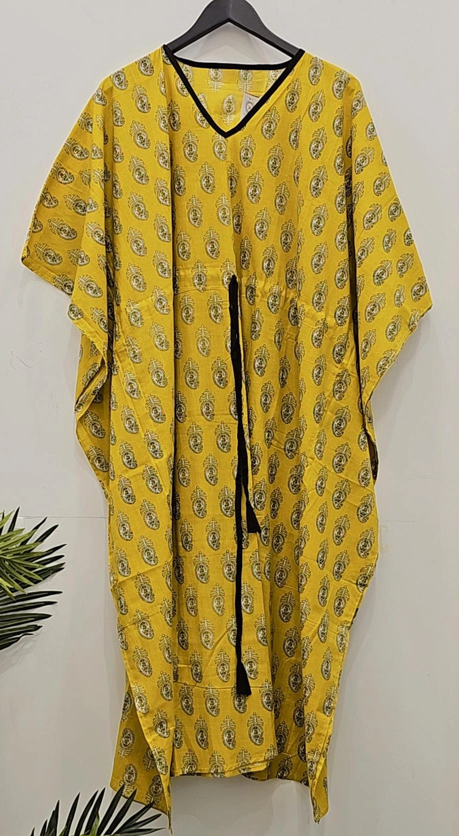 Discover the epitome of relaxation and style with our "Sunny Splendor" yellow printed kaftan. Crafted for both leisurely days at home and casual outings, this kaftan offers absolute comfort with a touch of effortless elegance. The lightweight and breathable fabric ensure maximum comfort, whether you're lounging around or heading out for a quick shopping trip. Experience the perfect blend of comfort and style with our yellow printed kaftan, designed to elevate your loungewear collection with ease.