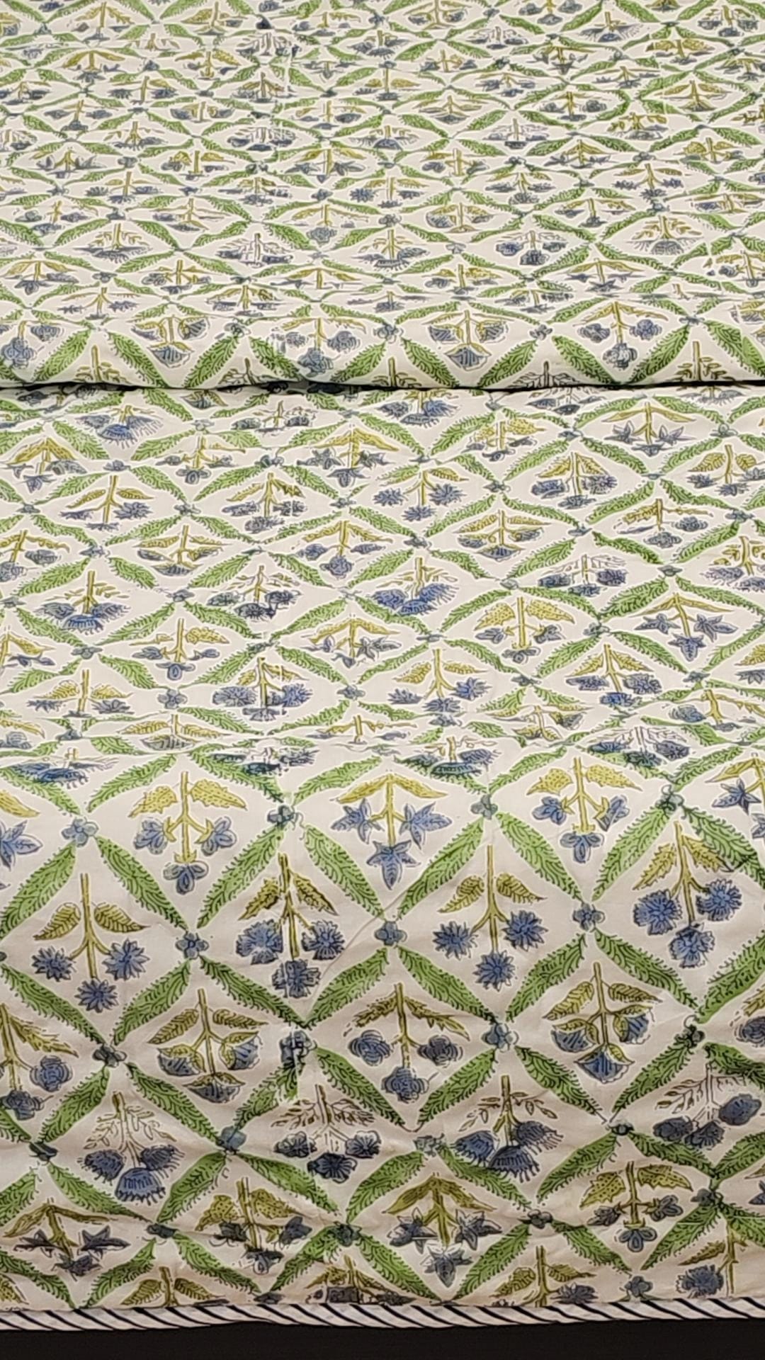 Experience the perfect blend of style, comfort, and convenience with our handblock print winter quilts. Shop our "Emerald Blooms" collection today and transform your bedroom into a cozy winter sanctuary.