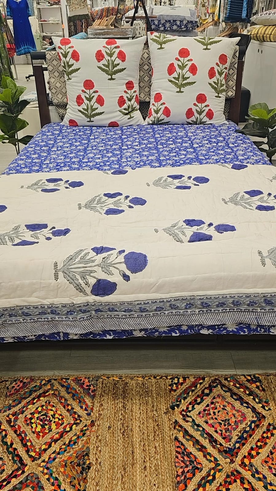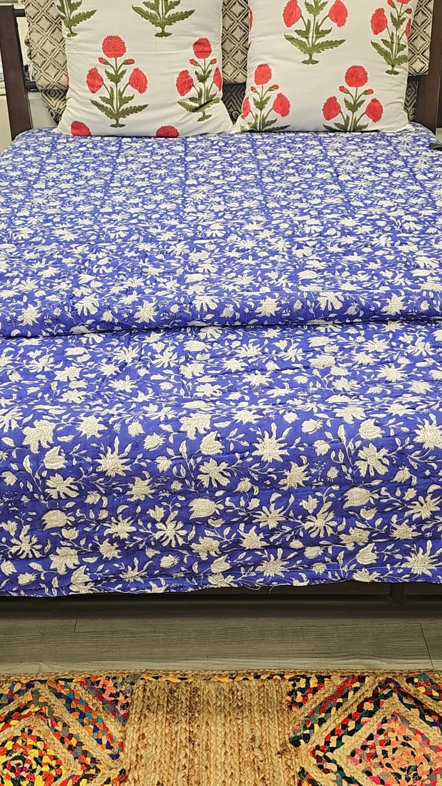 Welcome to our collection of Handblock print winter quilts, where elegance meets functionality! Introducing our "Twilight Garden" quilt, a stunning addition to any bedroom decor.