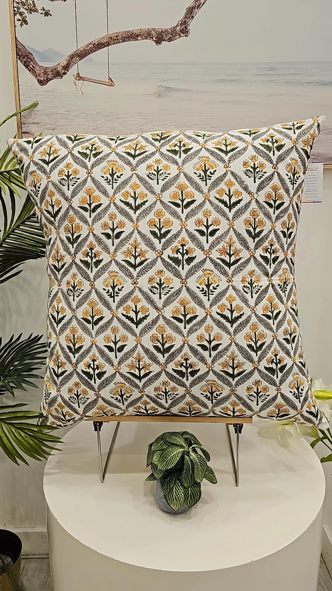 "Serenity in Harmony: Yellow and Grey Pattern Cushion Covers" (Size 24"X24")